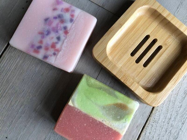 2 ZEEPJES MET BAMBOE ZEEPTRAY 2