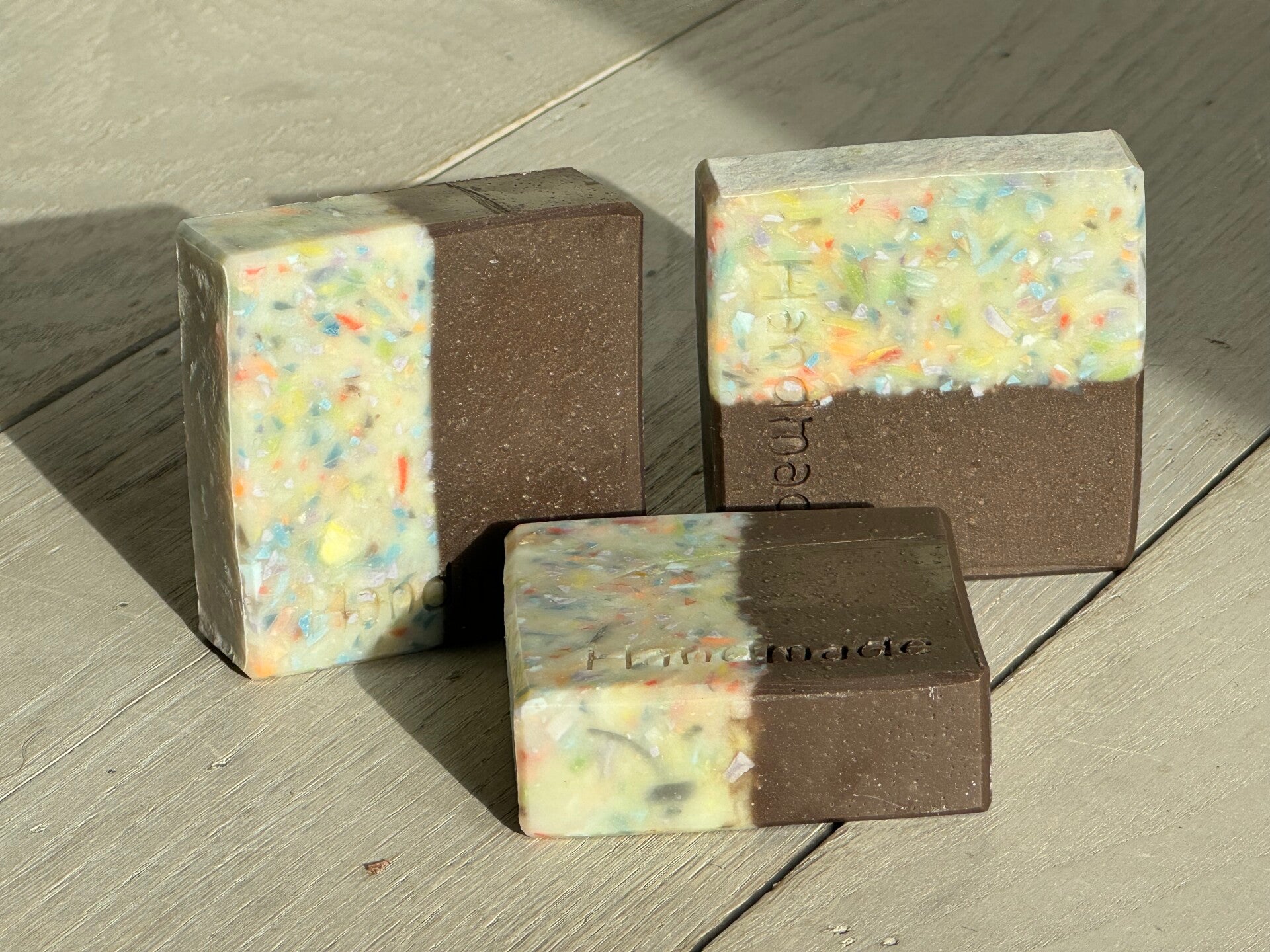 Elke stuk zeep is handwerk en daardoor uniek. De kleuren en tekening kunnen lichtjes anders zijn dan het afgebeelde product.